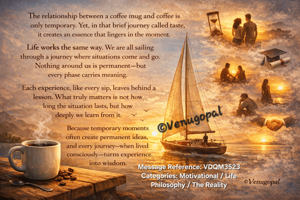 Life works the same way. We are all sailing through a journey where situations come and go. Nothing around us is permanent—but every phase carries meaning. Each experience, like every sip, leaves behind a lesson.
